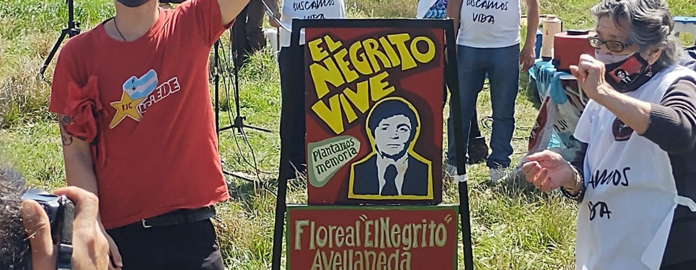 Floreal fue desaparecido en Argentina, luego encontrado su cuerpo en las orillas de Uruguay y nuevamente desaparecido. Hoy, con un gobierno constitucional y con la amenaza del auge del fascismo, AL NEGRITO LO VUELVEN A DESAPARECER. La derecha piensa que borrando nuestra materialidad, borrando nuestros carteles y baldosas, escrachando murales que reivindican el NUNCA MÁS van a hacernos mermar en nuestra lucha. Pero nada más lejano a ello: volveremos a campo de Mayo y plantaremos miles de árboles, pondremos miles de carteles y seguiremos luchando para que allí se construya un verdadero SITIO DE MEMORIA que también proteja nuestros símbolos de la arremetida fascista.